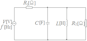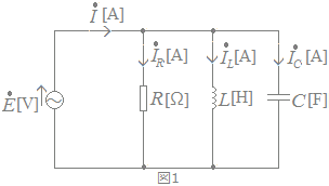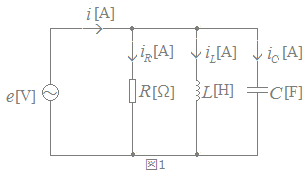 ○ 次の図のように,抵抗R,コイルL,コンデンサCが交流電源に並列に接続されているときに流れる電流は ![]()