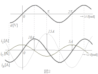 が成り立つことを用いて求めることができます.(2) 電流の瞬時値は,各電流 , , の和に等しい. (なお,各電流は位相が異なるので,Iの実効値は各電流の実効値の和にはなりません.)