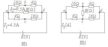 (a) 図1のように抵抗R[Ω]を端子a, d間に接続したとき,I1=4.5[A],I2=0.5[A]の電流が流れた。抵抗R[Ω]の値として,正しいのは次のうちどれか。 (b)図1の抵抗R[Ω]を図2のように端子b, c間に接続し直したとき,回路に流れる電流I3[A]の値として,最も近いのは次のうちどれか。