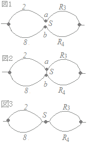 平衡条件は2:R3=8:R4 2R4=8R3 R4=4R3…(1) (電流)==の関係から,全体の抵抗は4[Ω]になるはずだから =4 =4 =4 4(2+R3)=20 2+R3=5 R3=3 →【答】(3)
