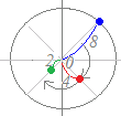 時計回りに回転して,絶対値を半分にしたものになる.(赤丸:) == ==−2i+2=2−2i さらに,2iで割ると,時計回りに回転して,絶対値を半分にしたものになる. (緑丸:−−i) 【問題8】