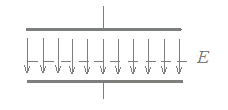 ○ 平行板コンデンサ内部のように電界の強さが一定の場合には,電位差V[V],電界の強さE[V/m],距離d[m]は次の関係を満たす.