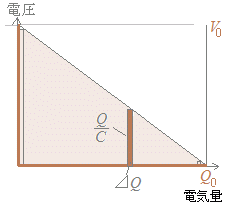 → これは,右図2の茶色の縦棒の面積に対応している.○ 最後には,電気がなくなり,E=0, F=0, Q=0