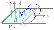 (Vの向きは,Φの増減を打ち消す向きで,その大きさはΦの変化率に等しい)