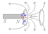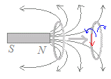 電磁誘導のファラデーの法則を使うと,次のような磁石とコイルの関係も説明できます.