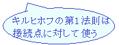 回路内のどの点についても,「入って来る電流」の大きさと「出ていく電流」の大きさは等しい。 【キルヒホフの第2法則】 どの閉回路についても「電圧降下」の合計と「起電力」の合計は等しい.