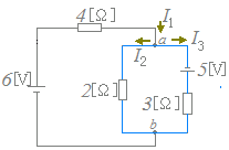 接続点aにおいてキルヒホフの第1法則を適用すると
