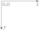 図1にように,描画領域の左上端が(0,0)で,右に行くほどx座標(ピクセル単位)が増加します.他方で,初期設定では,y座標は下に行くほど増えることに注意してください.(数学の座標とは上下が逆です).