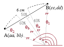 【よく使う小道具の作成(矢印の表示)】 〇 具体的には,2点A, Bの座標\(\mathrm{A}(aa,bb),\mathrm{B}(cc,dd)\)及び矢印の長さ\(rr\)が決まれば,機械的に矢印が描ける関数を作る.矢先を塗り込むタイプと塗り込まないタイプを選べるようにする. よく使う小道具の作成(矢印の表示)