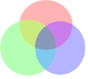 〇 右の図は,Excelで「挿入→図形」の手順で作成した「透明度70%」の画像で,赤,青,緑の色を重ねて表示したものです.これが,canvasでのglobalAlpha = 0.3 の場合とほぼ一致する.〇 【要約】 • canvasのglobalAlpha:色の塗り込み度=フィルターの透明度=大きいほど色が濃い • Excelなど他の画像の透明度:そのものの透明度で=大きいほど淡く白くなる • いずれも,液晶画面で光っているように見えるが,光の3原色の足し算ではなく,絵具の3原色の足し算になる?? ※なぜAlphaというのか?きっちりと書かれたものを見たわけではないが,一般に欧米系の数学・統計の文書では,定数項,1次の係数を \(y=\alpha+\beta x\) の形で書くことが多いようで,変化するものには\(\beta\),変化しないものには\(\alpha\)が好まれるようです. 〇 実際の使用例 〇 右の例では,ctx13_3.globalAlpha = 0.7;として,赤,青,緑の立体を重ねて描いています. |