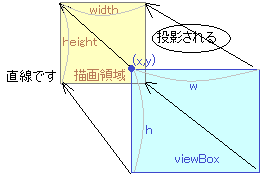 例えば,width="100" height="100" viewBox="-5 -5 10 10"の例で<line x1="0" y1="0" x2="10" y2="5"..>とすると,