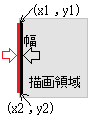 (x1,y1)から(x2,y2)に引かれた直線は,(x1,y1)と(x2,y2)を中心とする幅のある直線なので,描画領域の境界線上に描かれた直線は半分が表示されていないからです.