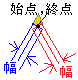 ただし,正の角,負の角は,画面上の時計回り,反時計回りと視覚的に結びつけるのでなく,x軸の正の向きからy軸の正の向きへ回る角が正とします. また,変換transformがあるときは,始点,終点の位置は,変換後の位置を表すことが重要です.