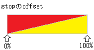 ここで命名したid識別子を参照する側@Aでは,#を付けます.offsetは0%から100%まで,または0から1まで指定するのが基本です.これにより既定値として「左から右へ,0%のstop-colorから100%のstop-colorまで」のグラデ―ションが描かれます.