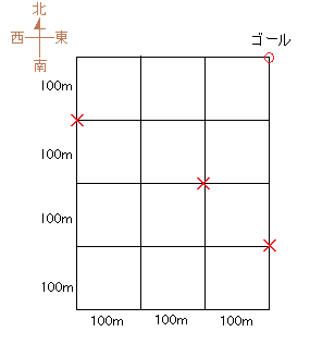 北へ100m進む