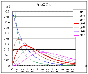 ○ χ2は0以上の値に対して定義され,0のとき完全一致し,差異があるほど値が大きくなる. ○ χ2分布表:[ ↓こちら ][ 非表示 ])